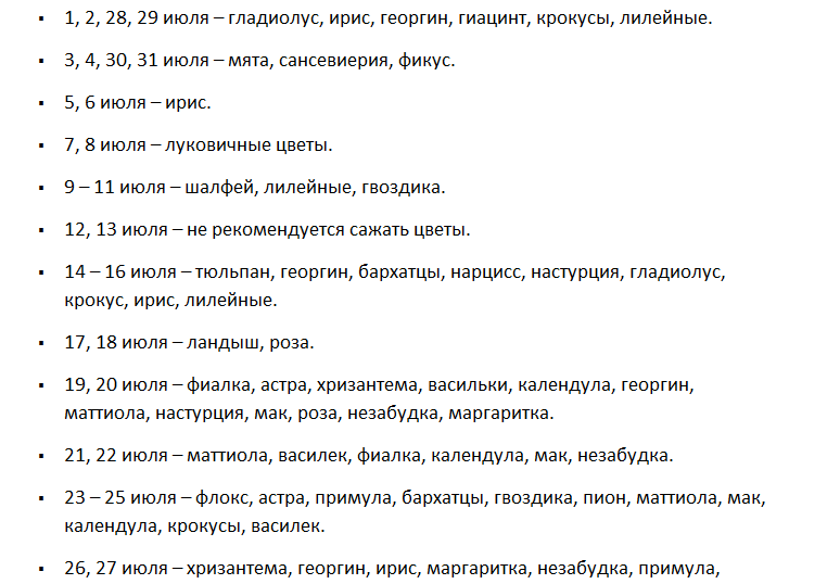 • Не рекомендованы пересадки растений, деревьев, работы в прикорневом круге.