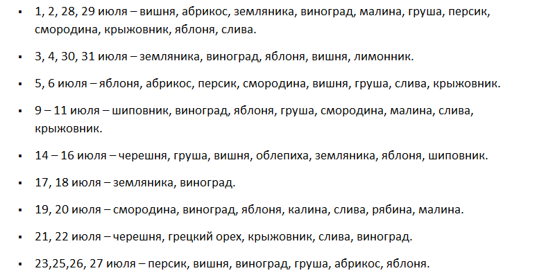 • Не стоит проводить опыление сада, огорода, поливать и вносить подкормки, обрезать сад, формировать крону.