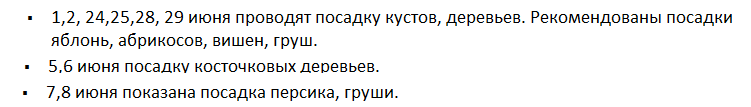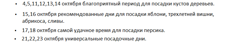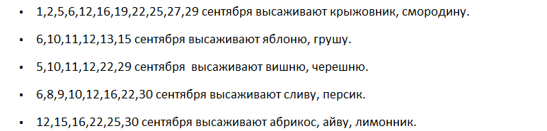• Показана посадка картофеля, фасоли, всех косточковых деревьев.