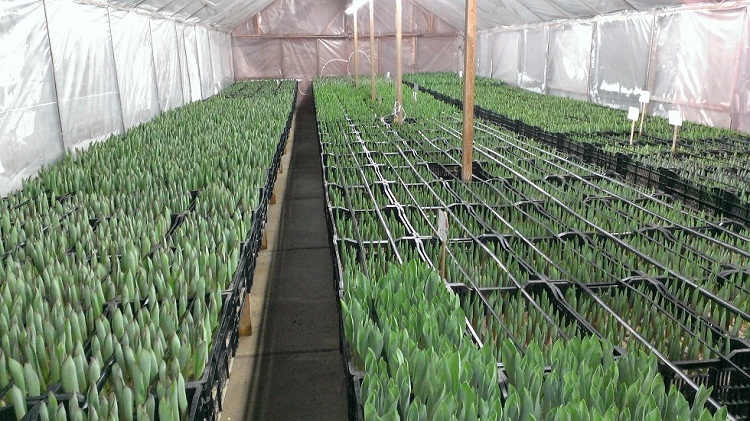 Примерно в этот же период перемещают тюльпаны из холодильных камер в теплицы. Там они пробуждаются после зимнего сна.