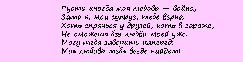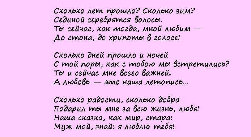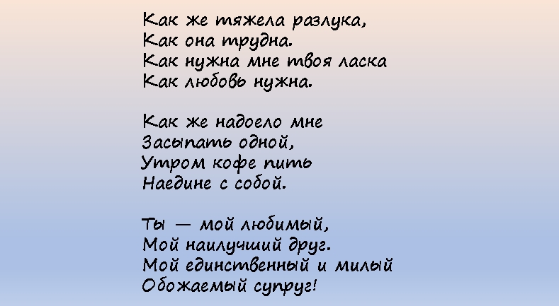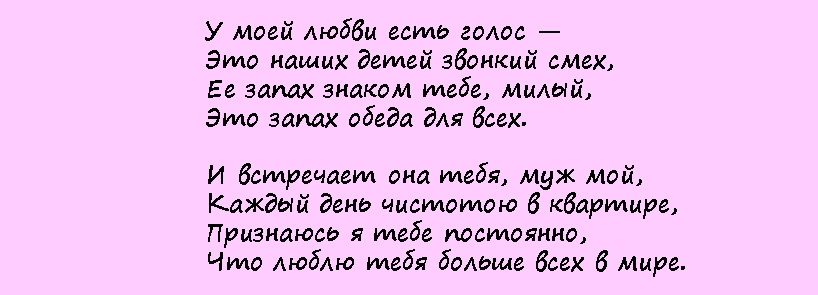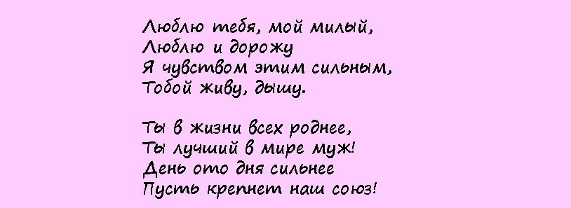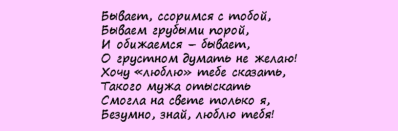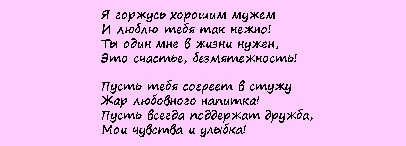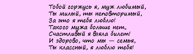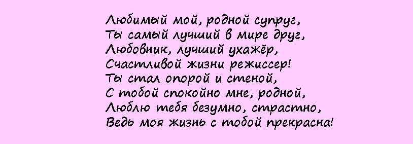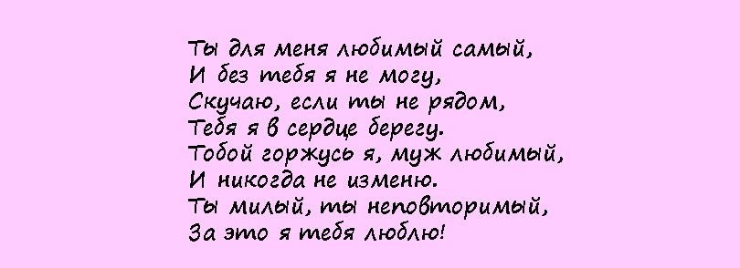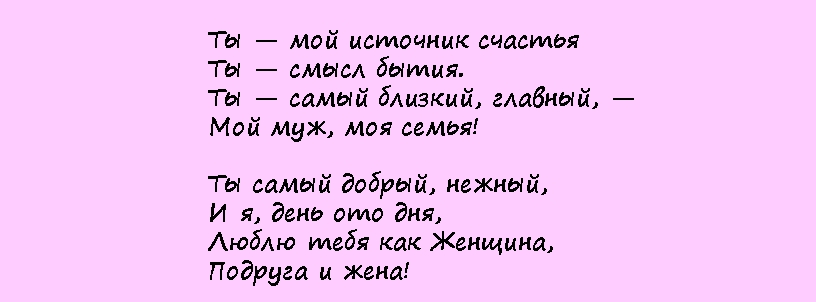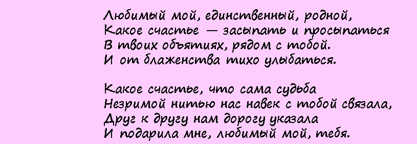 - Спасибо моему милому, любимому, ласковому! Эти слова тебе мой муж, за то, что ты есть у меня!