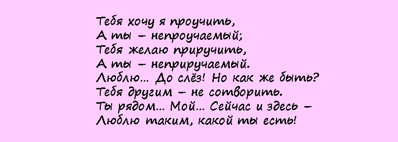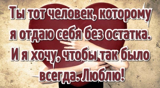 - Я люблю тебя любого, когда улыбаешься и когда злишься, когда в плохом настроении приходишь с работы, когда засыпаешь и просыпаешься, люблю тебя во всех твоих проявлениях!