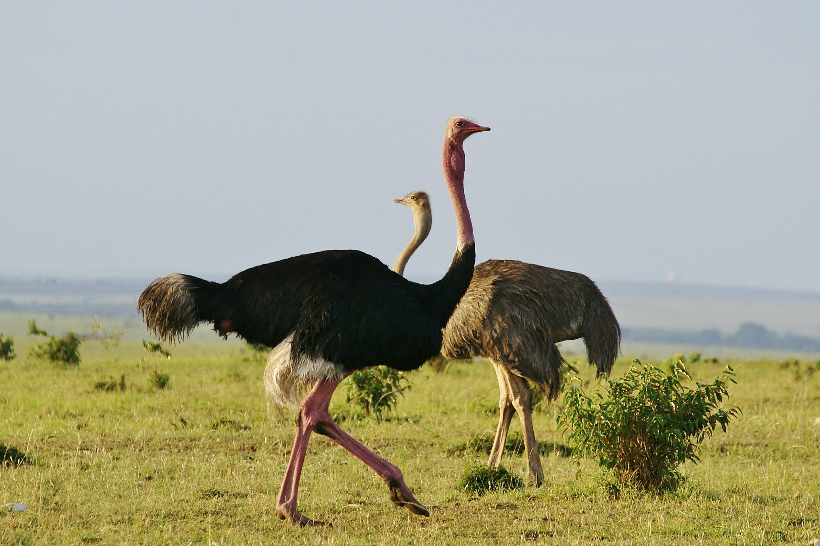 • Африканский страус — интересная птица, которая не умеет летать. Зато она обладает превосходным зрением. Страус очень дружелюбен и может свободно находиться среди стада антилоп, зебр и других животных. Дело в том, что эта огромная птица благодаря своему росту и точному взору видит опасность на большом расстоянии и при помощи характерного звука передает это своим соседям. За что они его очень уважают;