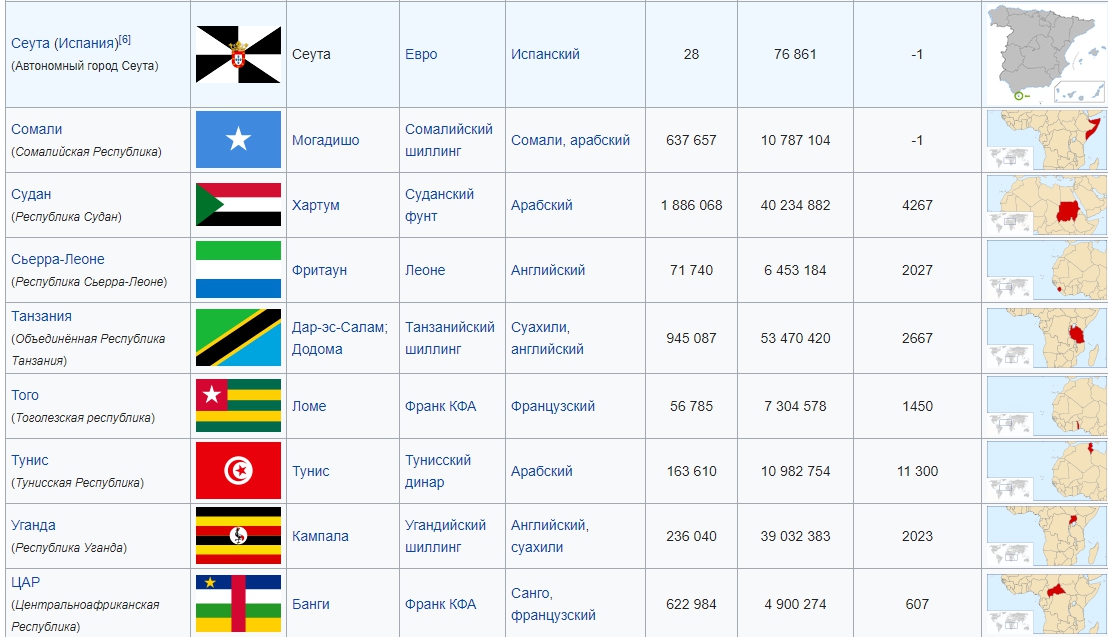 Всего в Африке насчитывается 55 государств. Все они умещаются на площади 30,3 млн. км.