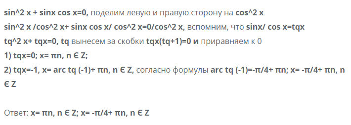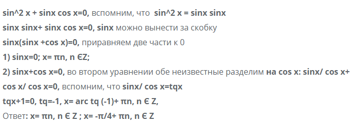Обычно решений тригонометрических уравнений бесчисленное множество. Например, общим решением тригонометрического равенства sinx=0, будет х= nπ, где n Є Z, где Z — множество чисел.