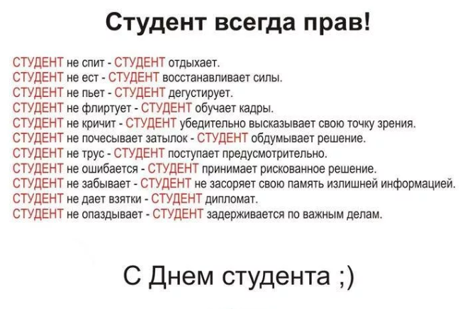В январе все учащиеся высших учебных заведений нашей страны празднуют День студента. В зарубежных странах этот праздник отмечается в ноябре и считается международным.