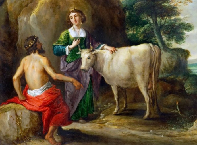 Пигмалион был одаренным художником и скульптором, но жил обособленно от всех. Но, вот однажды, создал он женскую статую, которая стояла перед ним, как живая и, неожиданно для себя влюбился. Много времени Пигмалион проводил рядом с ней, украшал ее волосы цветами, наряжал в разные одежды, дарил драгоценности. В своих мечтах он представлял, что статуя ожила и разговаривает с ним. Не решался Пигмалион обратиться к богам, чтобы те осуществили его мечту, боясь, что они разгневаются. Помогла ему Афродита после того, как он подарил ей телку с золочеными рогами. Статуя ожила и Пигмалион получил себе в жены красавицу Галатею.