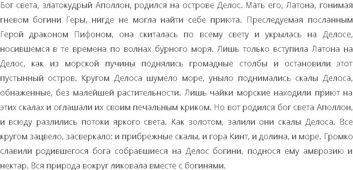 Интересное чтение для детей и взрослых, это мифы, которые рассказывают о подвигах людей или богов. По своей сути они похожи на сказки, так как, сюжеты напоминают фантастические истории, герои которых прославились на весь мир. Не смотря на то, что греческим мифам много тысячелетий, интерес к ним не угасает и в наше время.