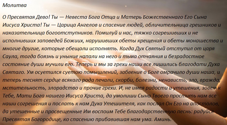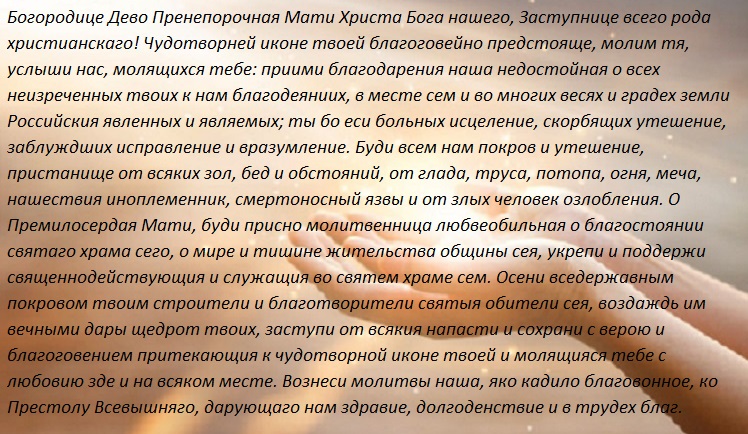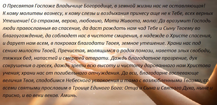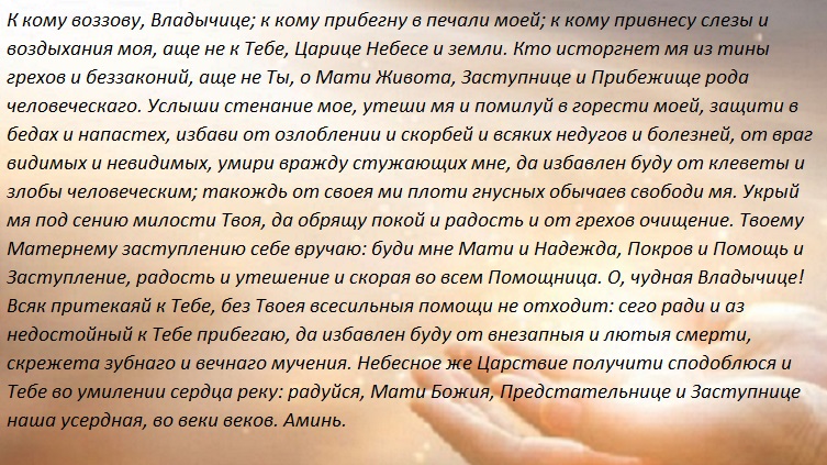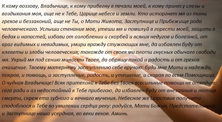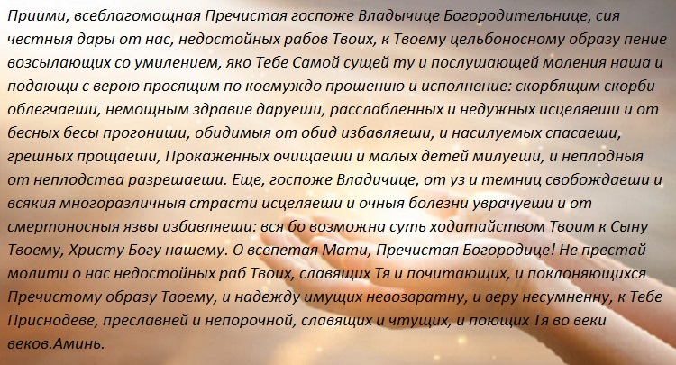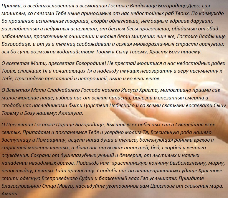 Прежде чем возносить молитву Пресвятой Богородице, необходимо прочесть Тропарь глас 4, Кондак глас 2. И только после этого возносить молитву.