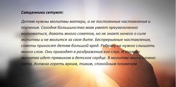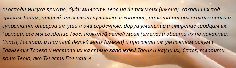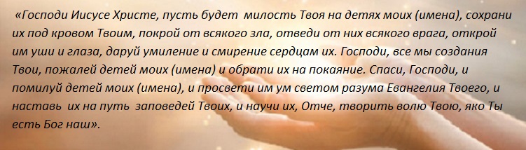 Священники говорят так, если не хотите проблем с детьми, чтобы в их головы не приходили дурные мысли, необходимо всегда вести беседу со Всевышним. Вот несколько строк, которые мама постоянно должна говорить мысленно/вслух ежедневно:
