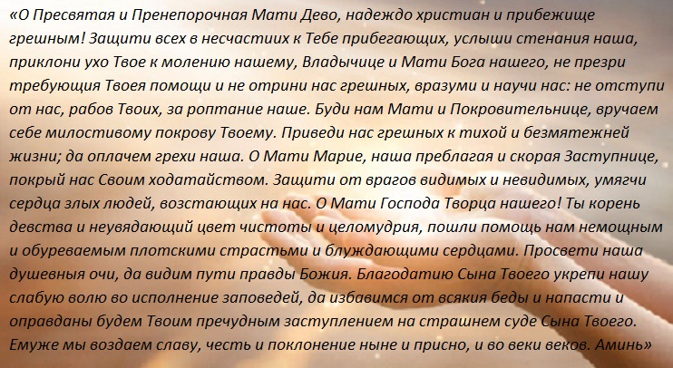 Молитвенное обращение к защитнице Всеблагой-Матери Божьей