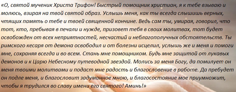 Молитва святому Трифону, мученику, чудотворцу, целителю о всяких житейских трудностях, в поисках работы.