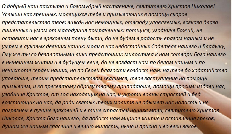 Молитвенное обращение к Николаю Чудотворцу