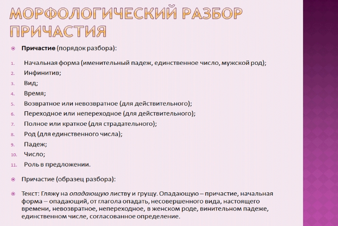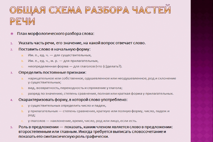 Перед тем, как сделать морфологический разбор, следует обратить внимание на: