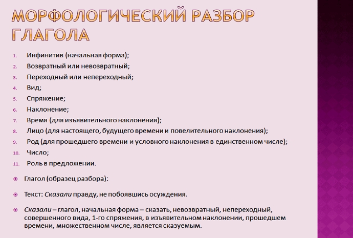 - Морфологический разбор слова глагола 4 класс, 5 класс
