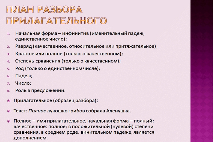 - Морфологический разбор слова прилагательного 4 класс, 5 класс