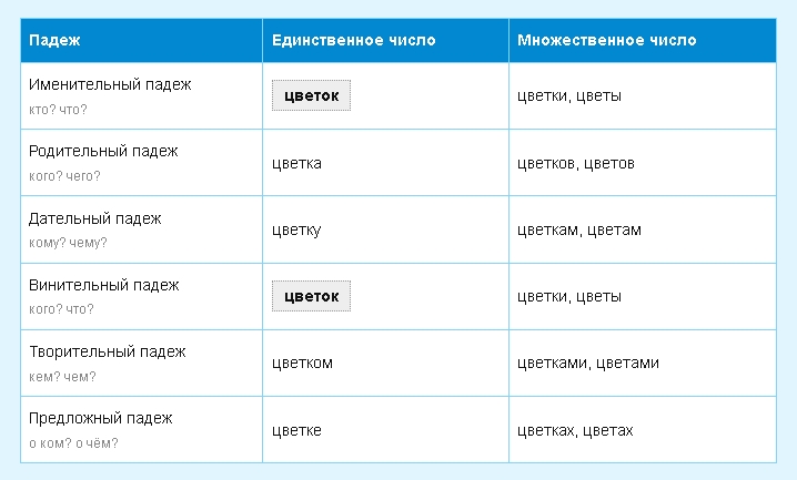 Нельзя забывать, что при разборе слова, к нему нужно применить единственное число. То же самое касается слова «цветы».
