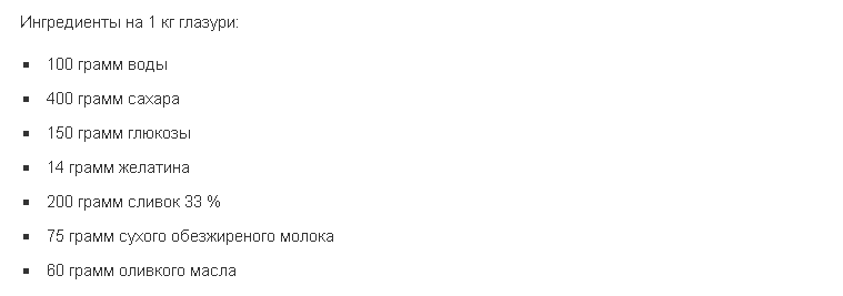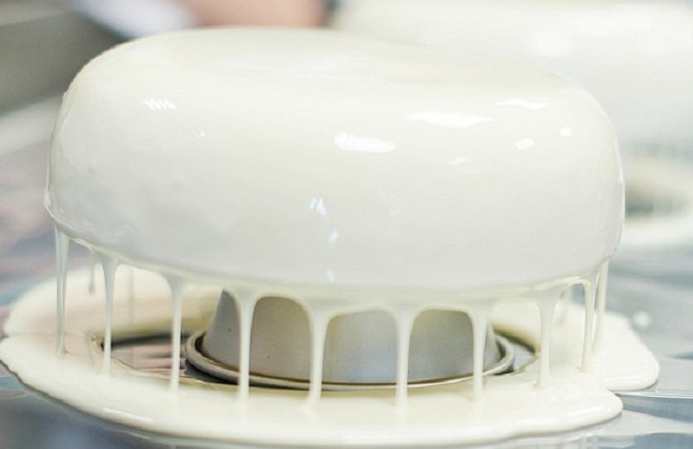 - Зеркальную глазурь можно получить, прибавив желатин и процедив его сквозь сито.