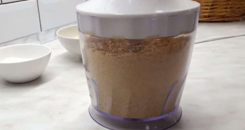 В блендере измельчить печенье. Масло растопить, остудить и смешать с печеньем и кокосовой стружкой.