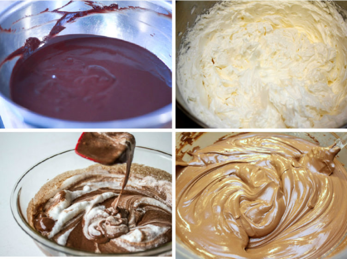 - Взбитые сливки и пудру размешивают с шоколадом и растопленным маслом.