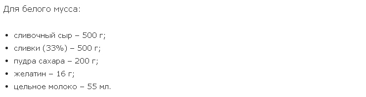 Белый шоколад более сладкий, поэтому готовится без сахарной пудры, а желатина следует добавить в большем количестве.
