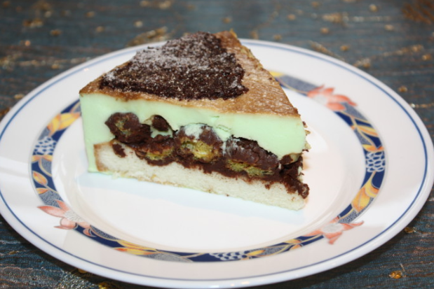 - Три вида шоколада по 100 г. растопить на водяной бане, к каждой добавить 200 мл сливок, добавить по отдельности в каждую часть Англеза и хорошо перемешать.