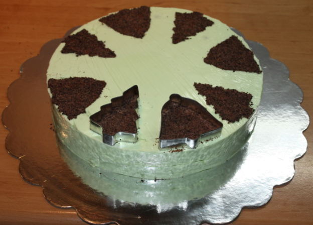 После застывания последнего слоя торт достают, снимают пергамент и начинают украшать.