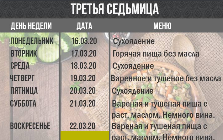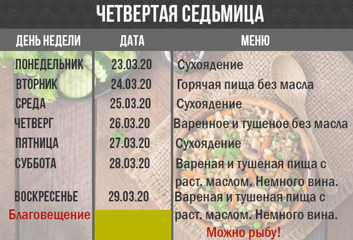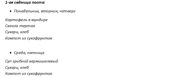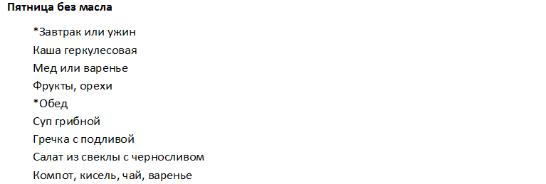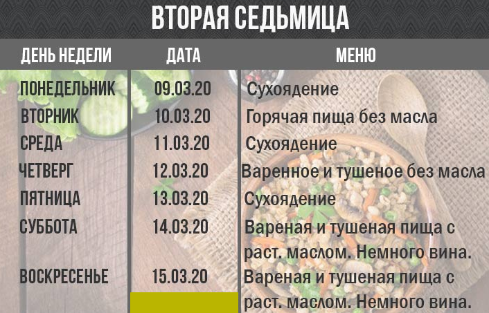 Со второй неделе можно разнообразить меню — пост менее строгий.