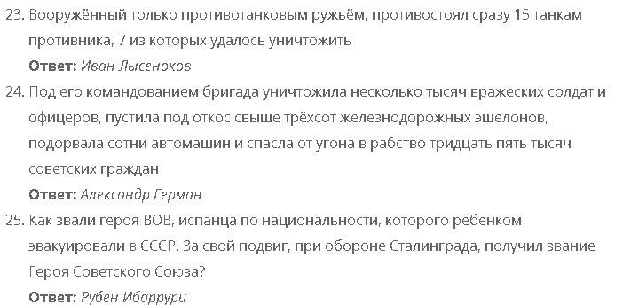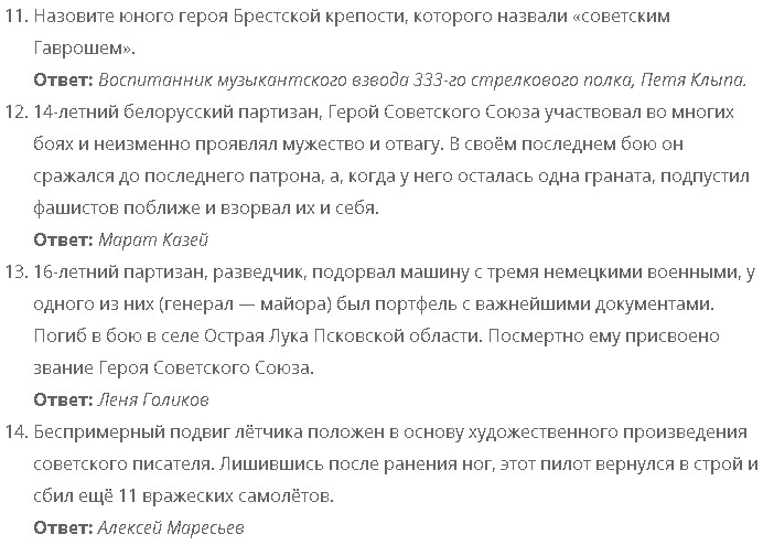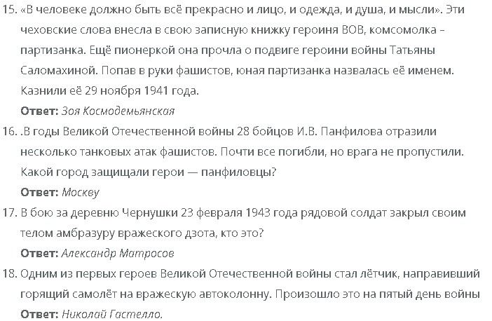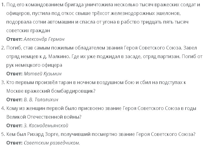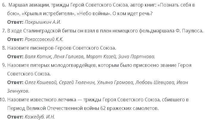 Назовите имена героев Великой Отечественной Войны: школьные вопросы с ответами для викторины