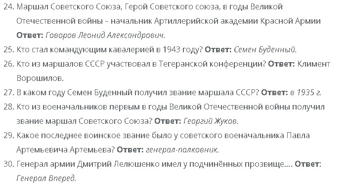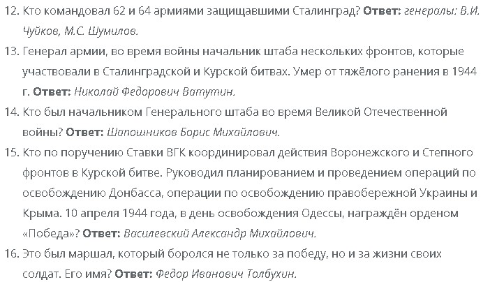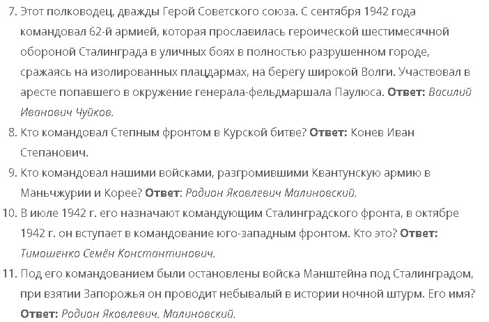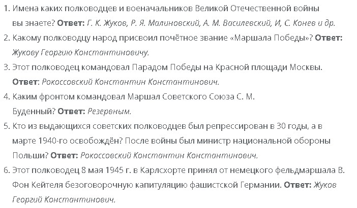 Выдающиеся полководцы Великой Отечественной Войны: школьные вопросы с ответами для викторины