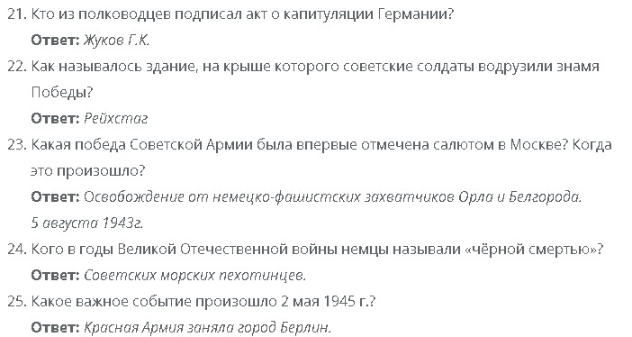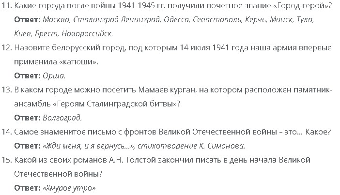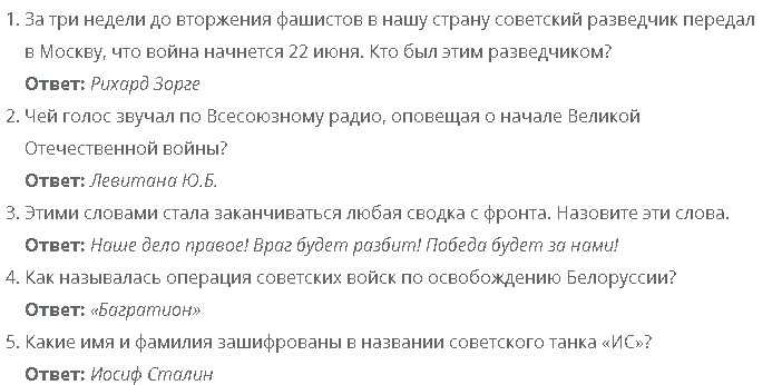 Вопросы история Великой Отечественной Войны: школьные вопросы с ответами для викторины