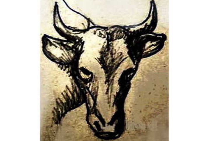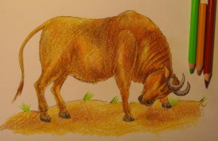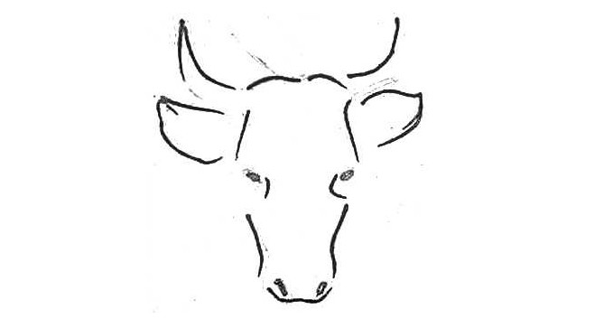 Черным или коричневым карандашом заштрихуйте голову быка, как на картинке ниже.
