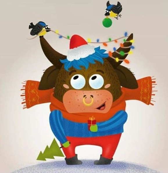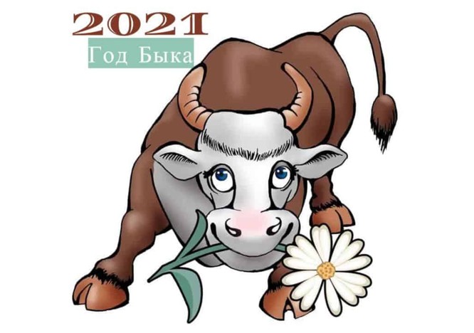 - Лапы быка опираются на доску, на который написан год — 2021.