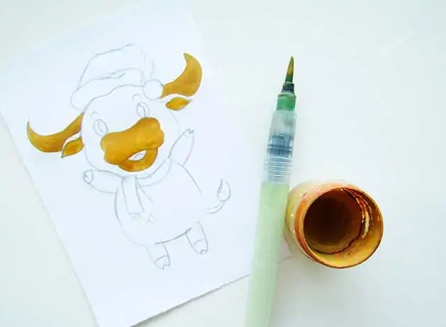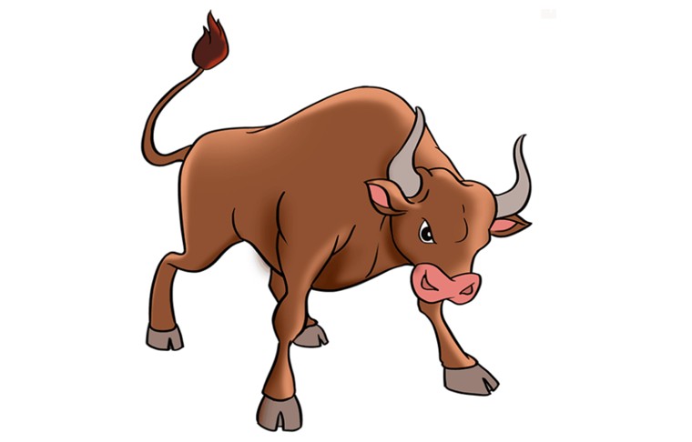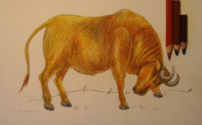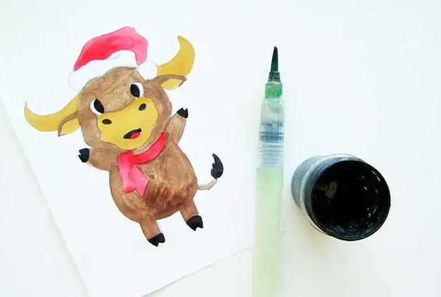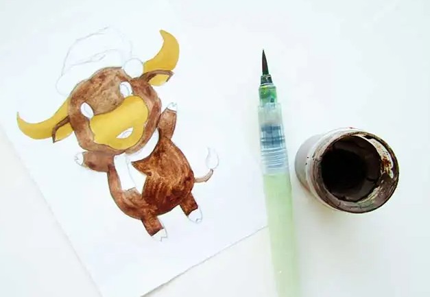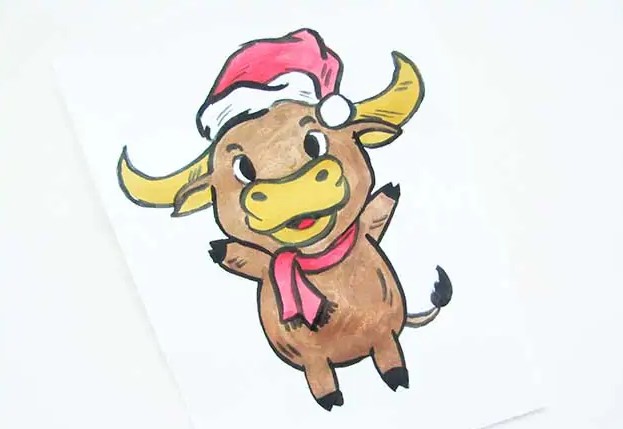 - Самое увлекательный завершающий этап — разукрасить быка и рисунок готов.