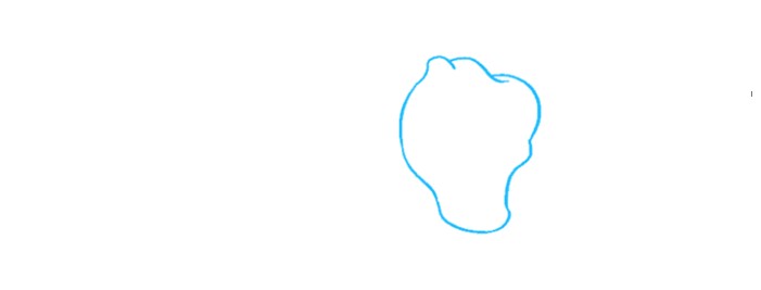 - Далее, нос и уши. Линию ушей протяните двумя изогнутыми линиями от головы, внутри каждого уха прорисуйте волнистые линии. Нос рисуется в форме неправильного овала.