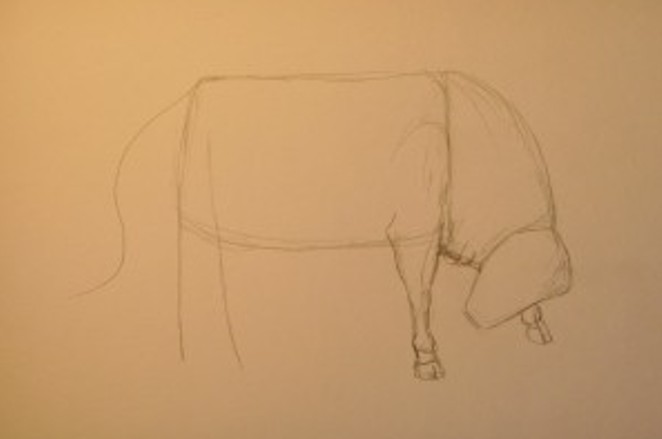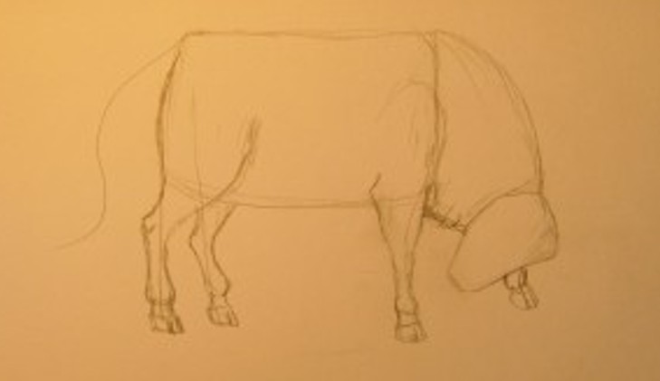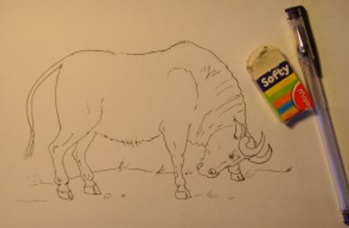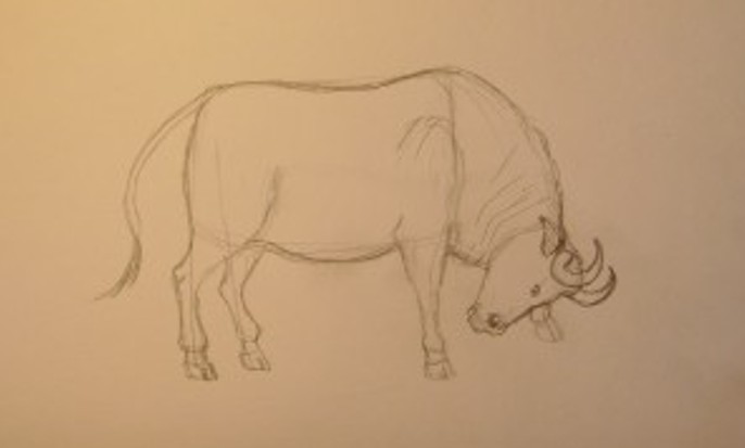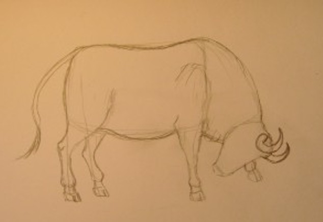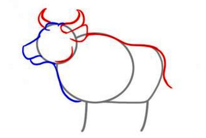 Бык является большим и сильным животным, предлагаем его таким и изобразить.