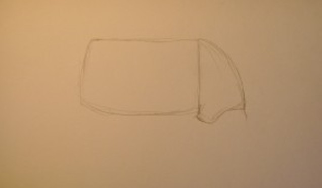- Сначала рисуем голову изогнутыми линиями, морду вытягиваем вниз,