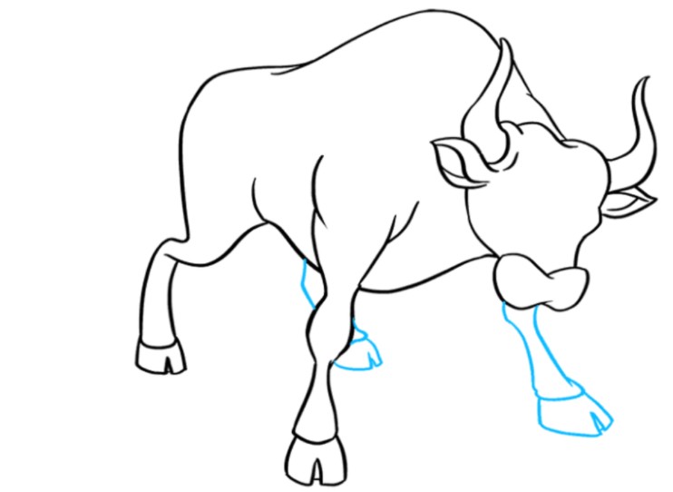- Прорисовывайте передние ноги, обозначьте на них копыта, они должны быть раздвоенные.