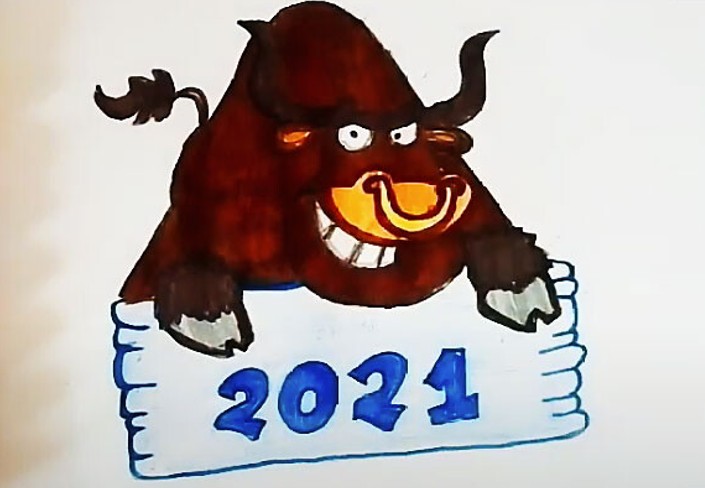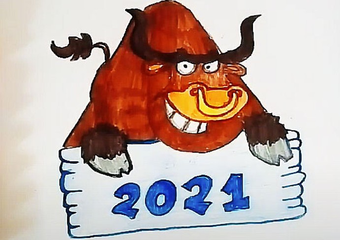 - Видео: » Как нарисовать символ Нового 2021 года — Быка»