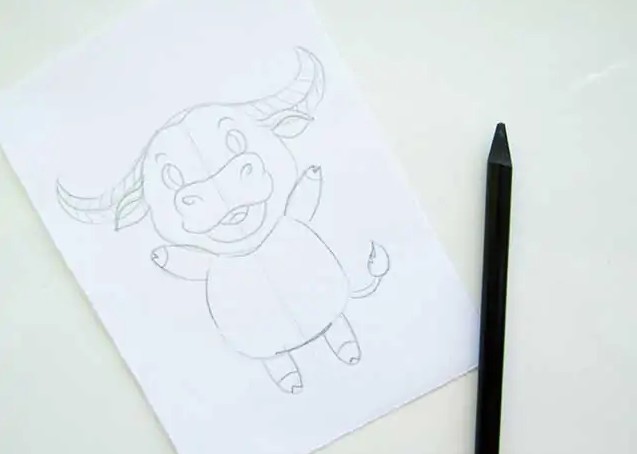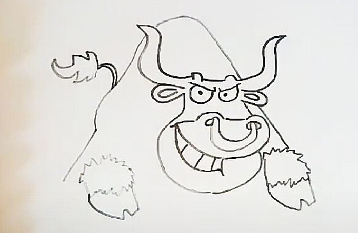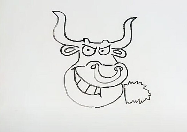 - Чтобы бык стал симпатичным, нарисуйте его улыбающимся.