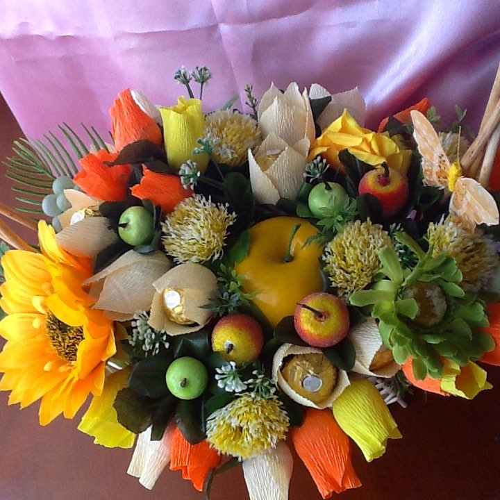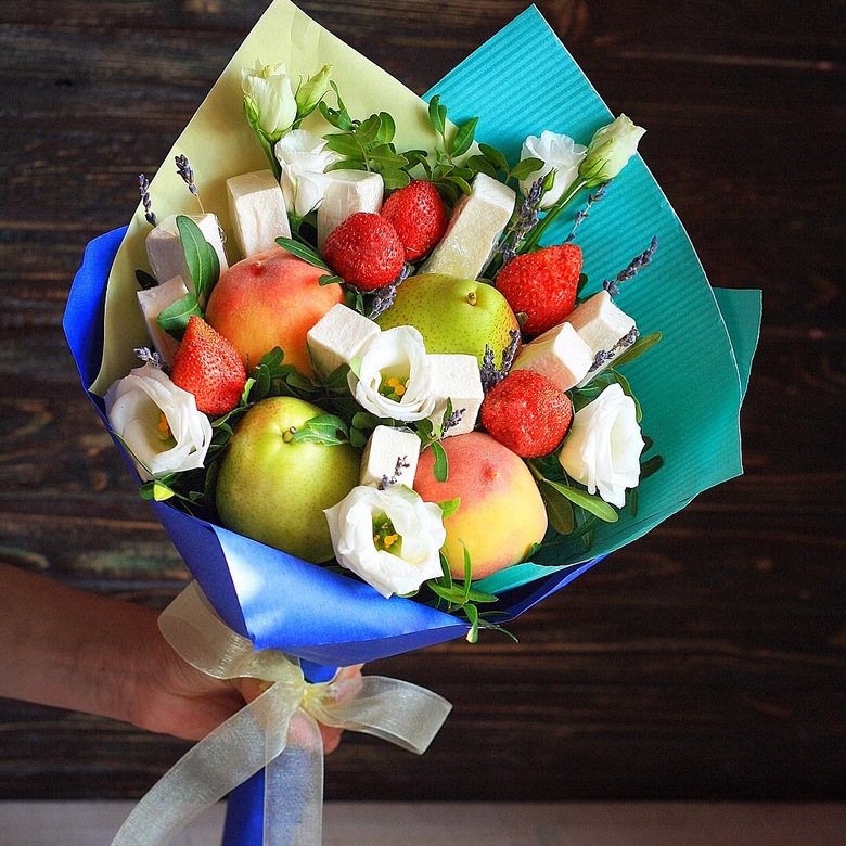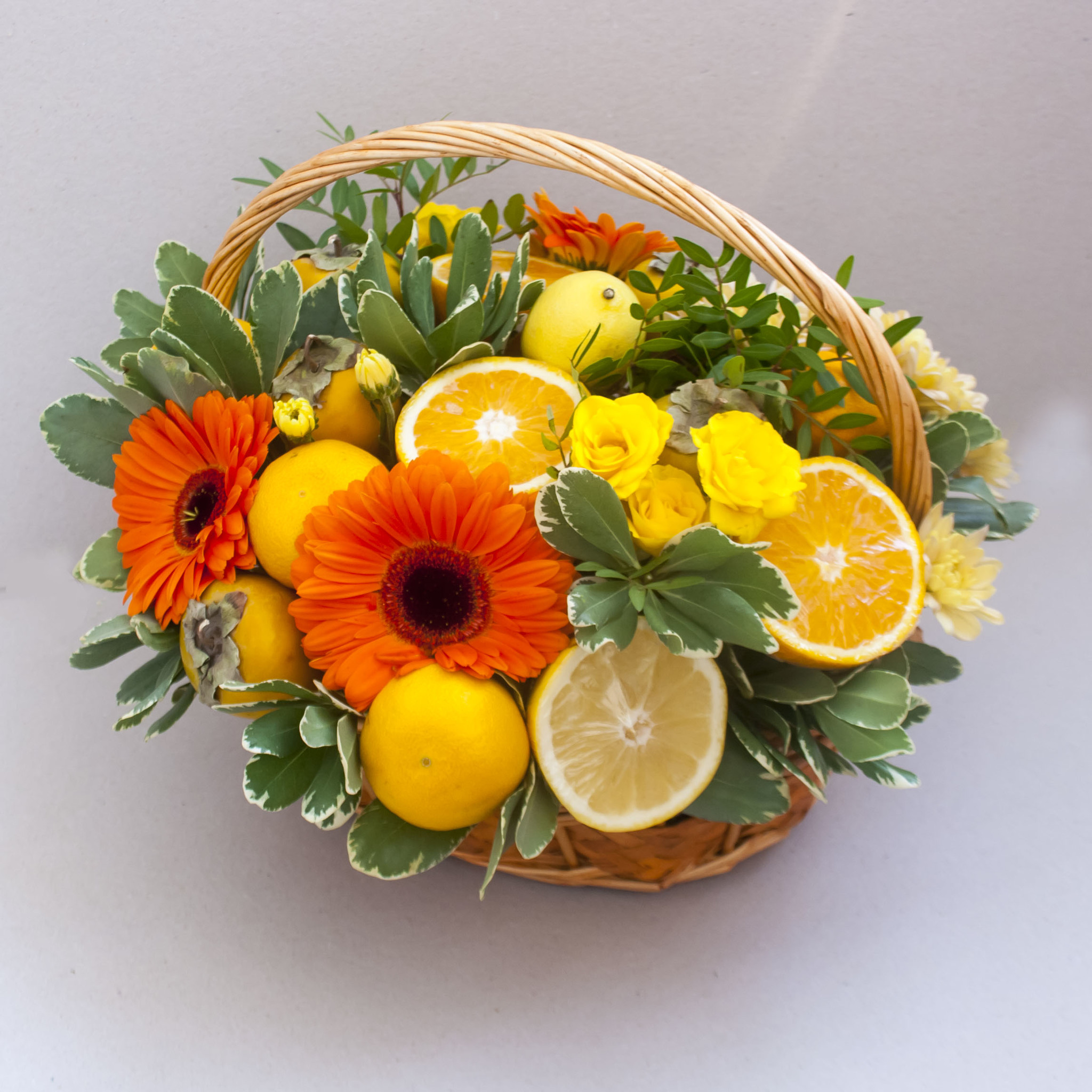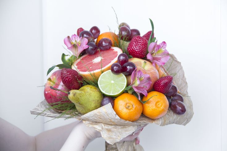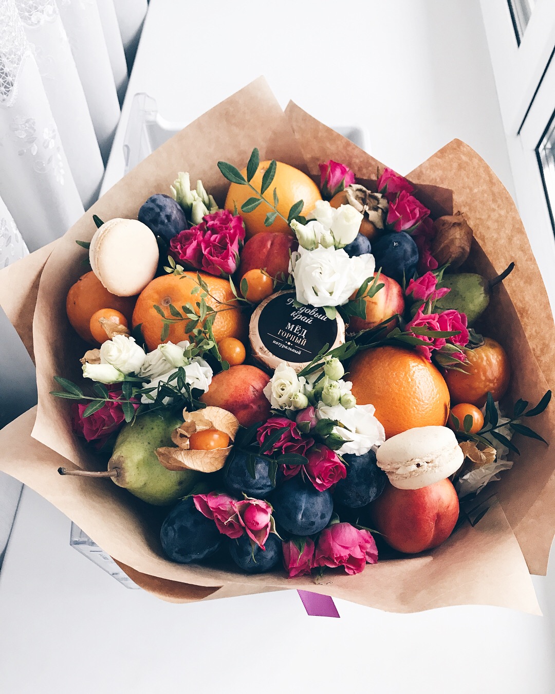 - Фруктово-цветочный сбор. Только представьте аромат этого букета, его запах рождает праздник;