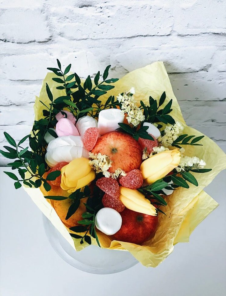- Фрукты и пастила. Этот букет может по праву называться диетическим;