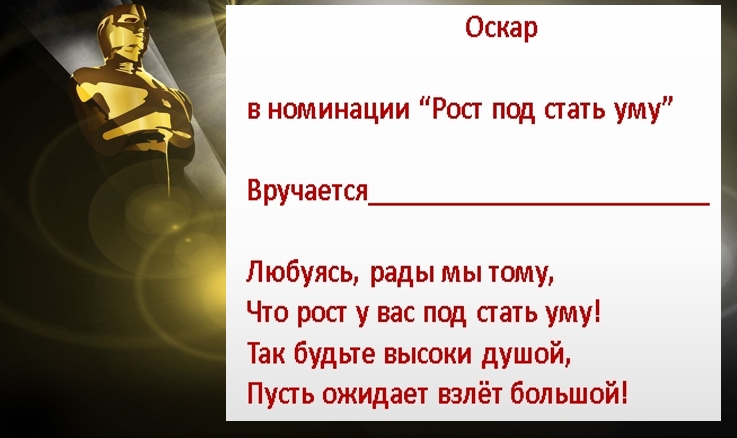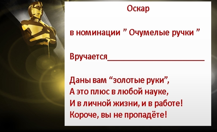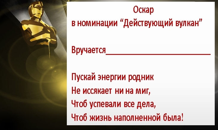 Еще один вариант отметить мужскую часть коллектива — вручить статуэтку «Оскар» по номинациям. Конечно она будет шуточная, но выглядит такой презент очень оригинально.