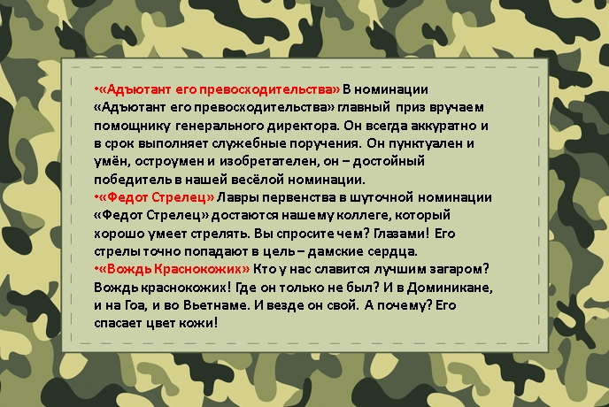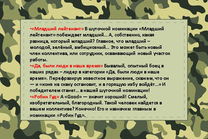 Номинации на 23 февраля