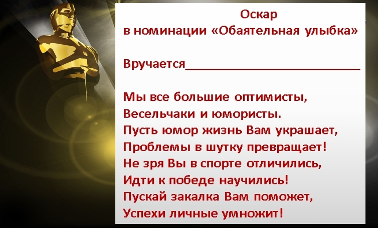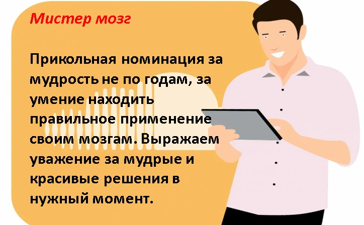 Придумывать номинации нужно со всей ответственностью. Рекомендуется отмечать положительные стороны со словом «самому», например: