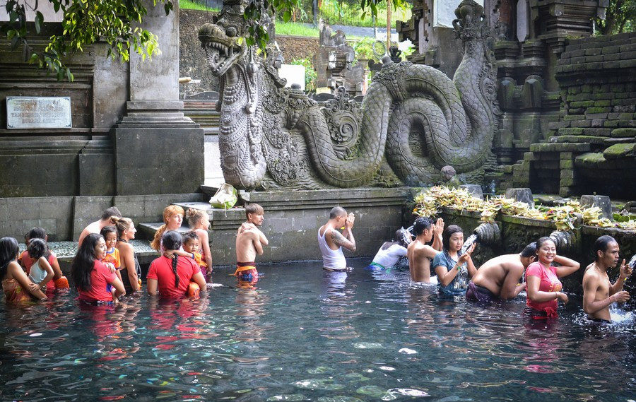 Храм Тирта Эмпул со святым источником — в числе самых почитаемых балийских храмов. Название в буквальном переводе значит: «Храм священной воды». История Тирта Эмпул насчитывает более тысячелетия. Местные жители совершают подношения и поклоняются живительным водам источника Тирта Эмпул как святыне. В окрестностях — три просторных бассейна для целебных омовений и душевного очищения. Недалеко от Тирта Эмпул — древние скальные пещеры и храм Гунунг Кави.