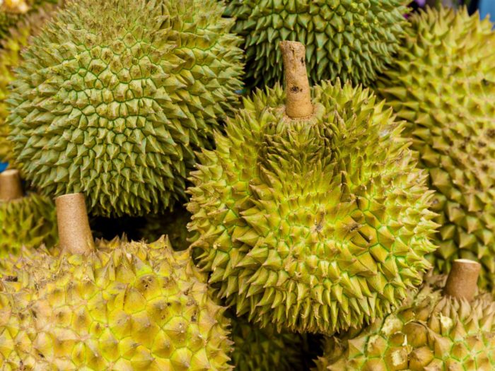 Вместо новогодних мандаринов отведайте самый экзотический фрукт на планете — дуриан. Плод имеет вес до 8 кг и содержит необычайно вкусное содержимое, отдаленно напоминающее яично-молочный крем. Дуриан считается «королем» фруктов не только из-за прекрасного вкуса, но и из-за содержания большого количества витаминов и минералов.