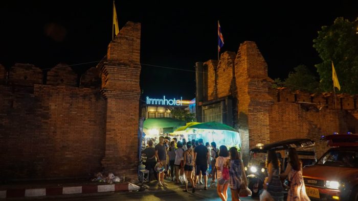 Новый год жители и туристы встречают на площади у ворот старинной крепостной стены из красного кирпича — Tha Phae Gate. Это центральная часть города, где обычно проходят все праздники, фестивали, уличные шествия. Это место наполнено небольшими кафешками, ресторанчиками, отелями, торговыми точками.