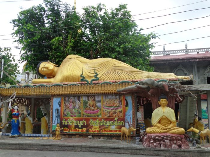 Возлежащий Будда — самая необычная статуя божества. К этому месту мало проводят экскурсий, но храм следует посетить и посмотреть на самую большую статую Будды в лежащем положении. На территории храма можно увидеть разноцветные фигурки животных, символизирующих перерождение людей в животных, если в этом мире они жили недостойно.