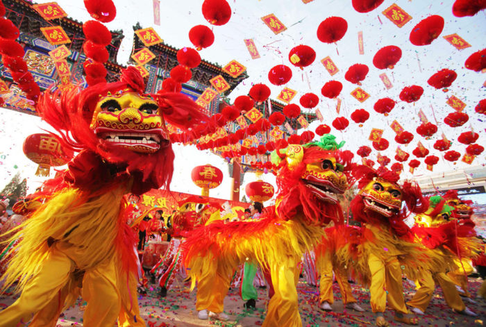 В полночь в городах происходит удивительное шествие «драконов», «змей», «львов». Фигуру огромного дракона проносят по центральным улицам под музыкальное сопровождение, салюты, фейерверки, взрывы петард.
